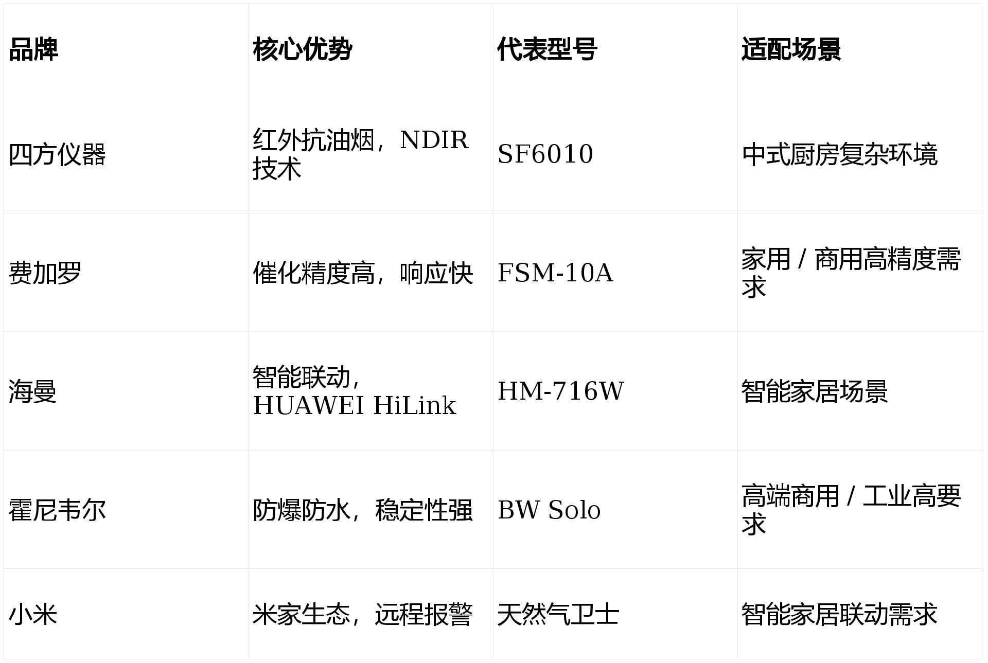 | 红外(NDIR)| 约 10 年 | 强(IP65)| 高 | 中高 | 排烟罩大、朝湿厨房卫生间 |