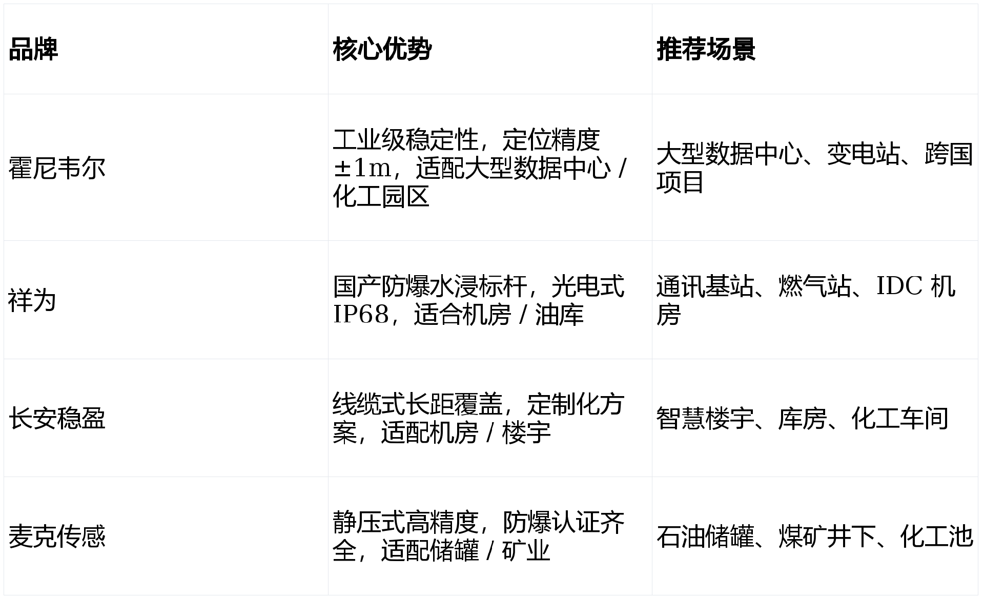 选观测方案:小超范围工位选光电科技 / 电级;长空距 / 精准定位选线材式;不断液位数据监测选投入到式负压。