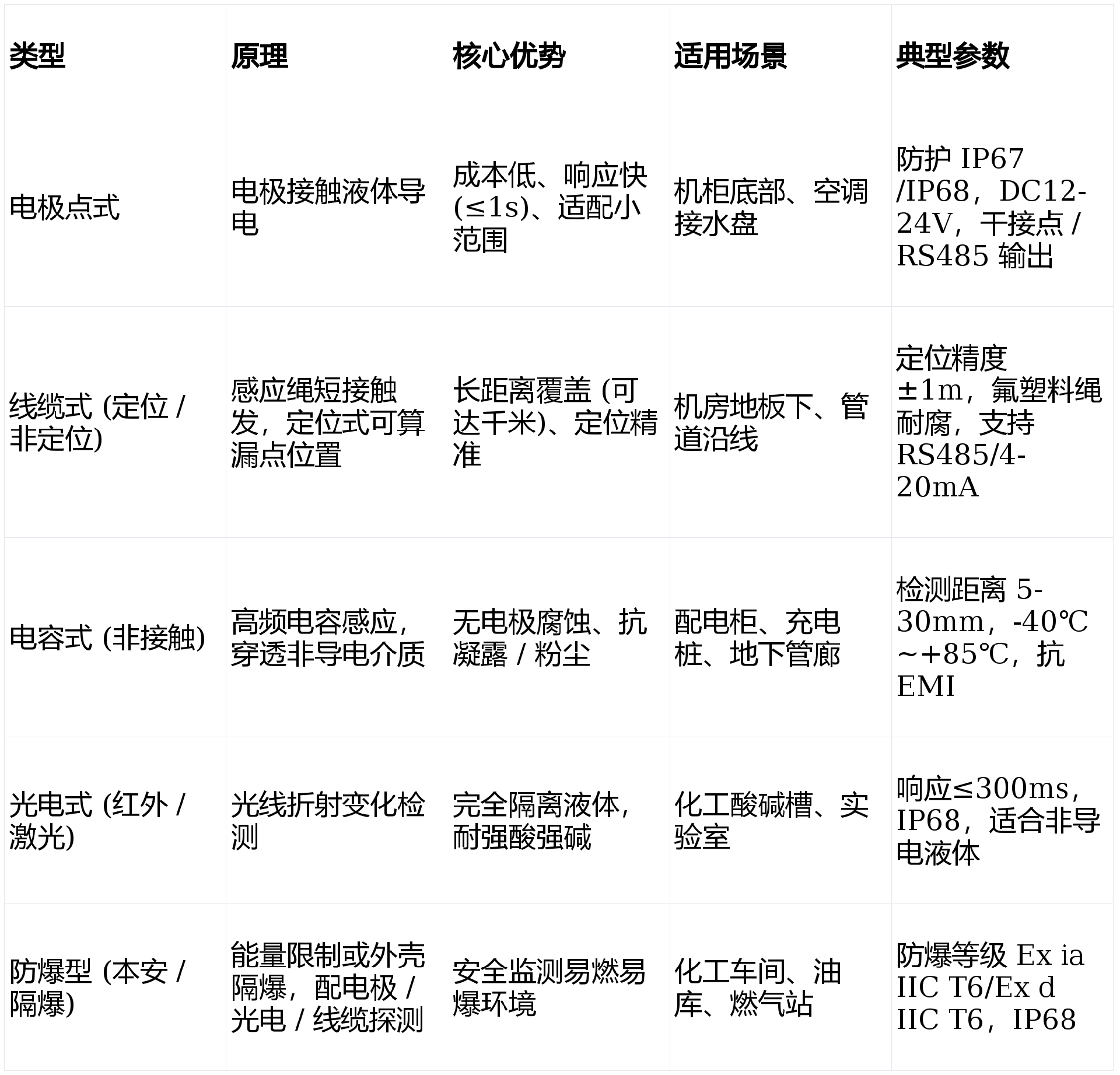 定情景与范畴内:小范畴内用点式,长多远 / 地位用电缆线式,侵蚀区域用非接触的面积 (电容(电容器) / 光电公司),隔爆情景选本安 / 隔爆型。